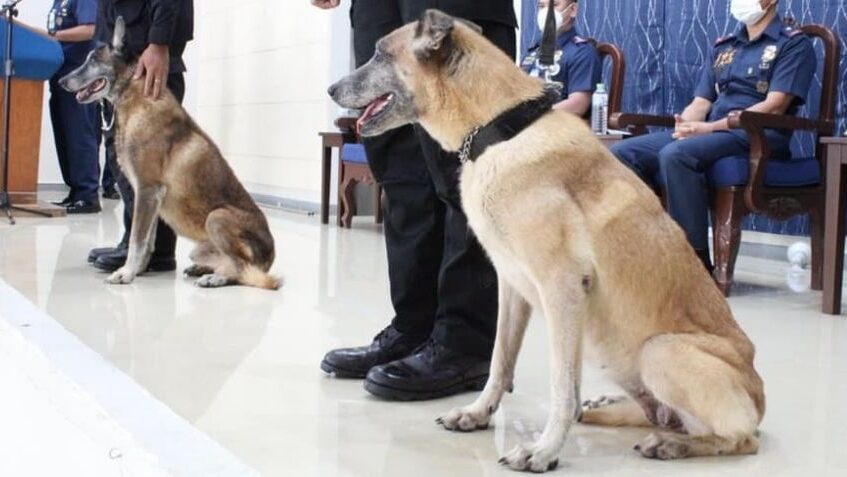 Binigyang-pugay ang dalawang explosive detection dogs sa kanilang naging retirement ceremony sa Police Regional Office 11 sa Davao City