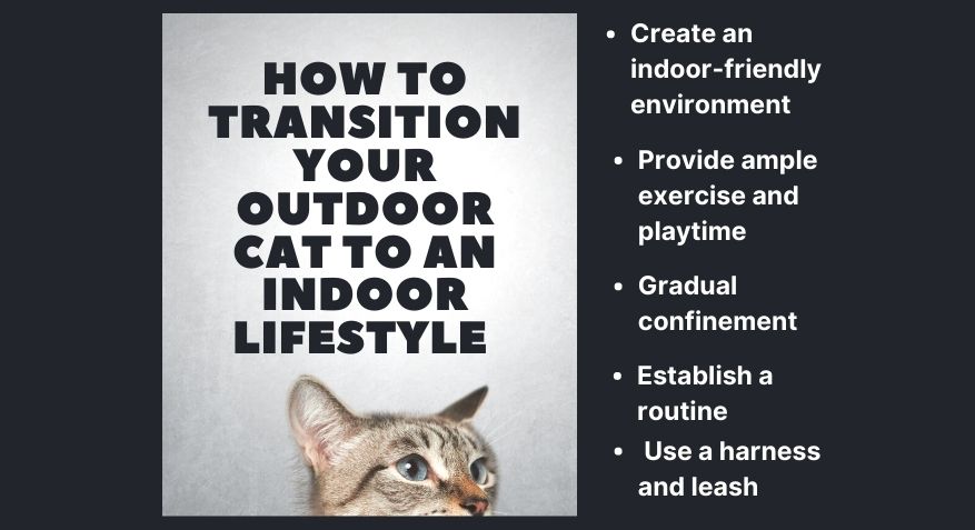 Transitioning an outdoor cat to an indoor lifestyle can be a gradual process that requires patience and careful planning. Here are some steps you can take to help your outdoor cat make the transition: