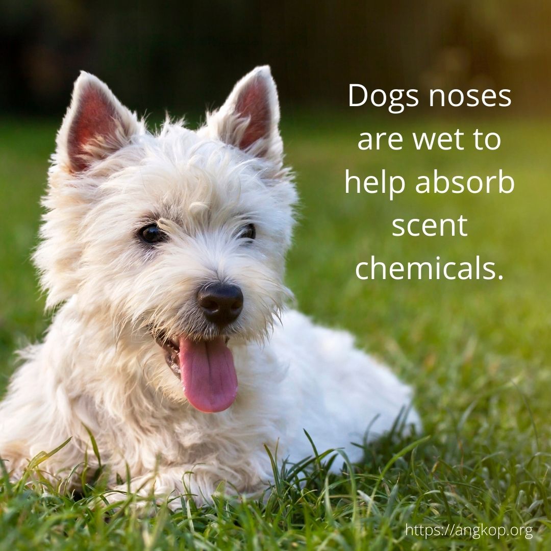 - Dogs’ noses are wet to help absorb scent chemicals