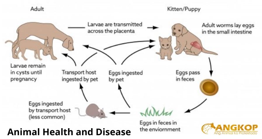 - Older pups and kittens can acquire infection by ingesting eggs disseminated on premises by dams with post-gestational infection; dams can be infected by ingesting immature stages in pups’ feces or vomitus, or by predation on vertebrate transport hosts.