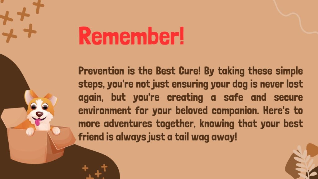 Prevention is the Best Cure! By taking these simple steps, you’re not just ensuring your dog is never lost again, but you’re creating a safe and secure environment for your beloved companion. Here’s to more adventures together, knowing that your best friend is always just a tail wag away!
