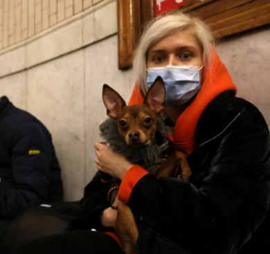 Ukrainians are grabbing their pets as they seek shelter underground or flee to neighboring countries. Many are refusing to leave