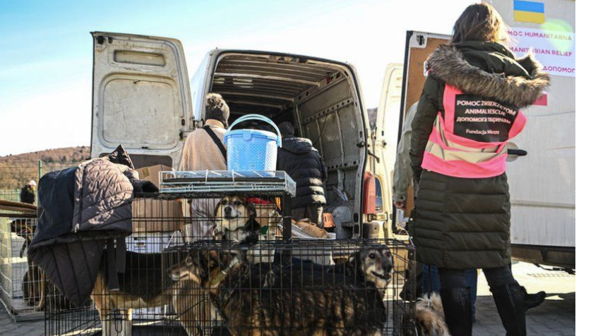 Volunteers care for stranded animals on the Ukraine-Poland border